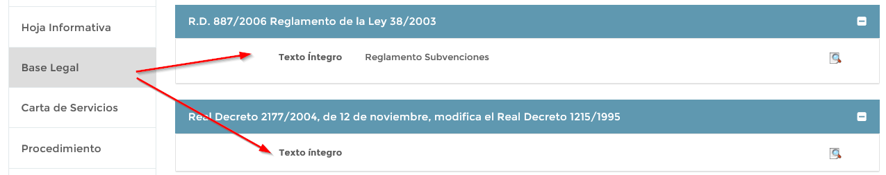 Esta pestaña contiene la normativa jurídica en la que está sustentado el asunto.
