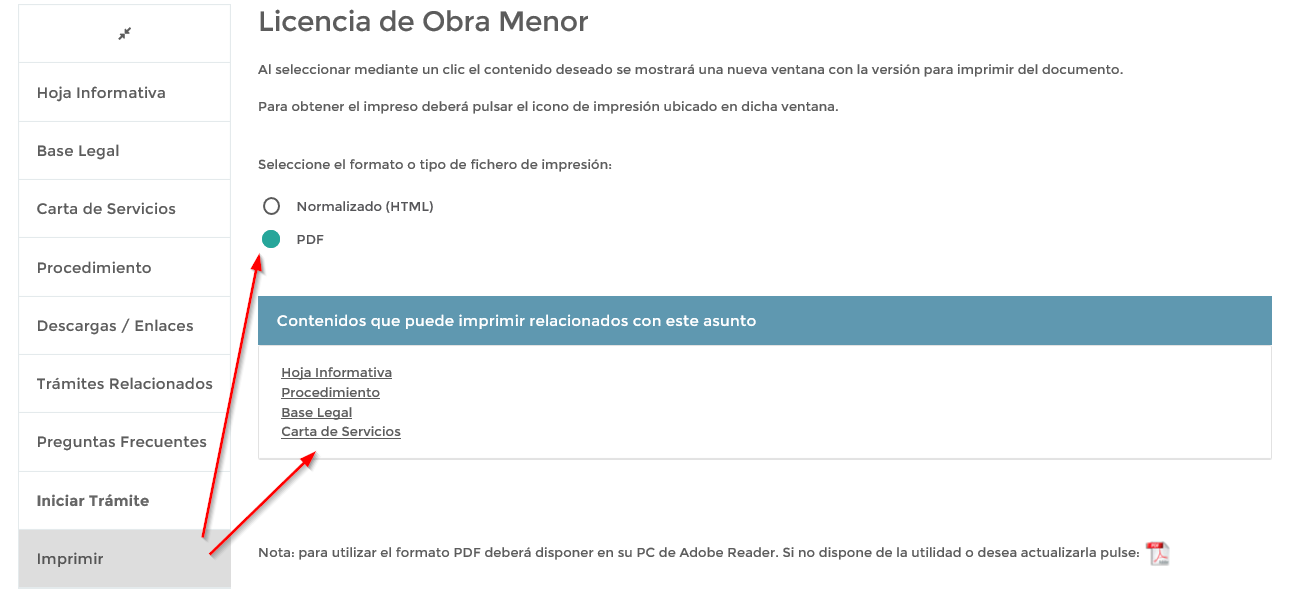 Podemos imprimir la información del trámite pulsando en esta pestaña.