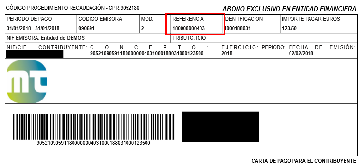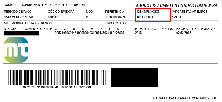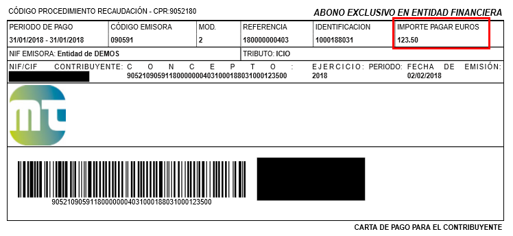 Aclarar que las imágenes que aparecen a continuación, son un ejemplo de una carta de pago emitida por la administración.